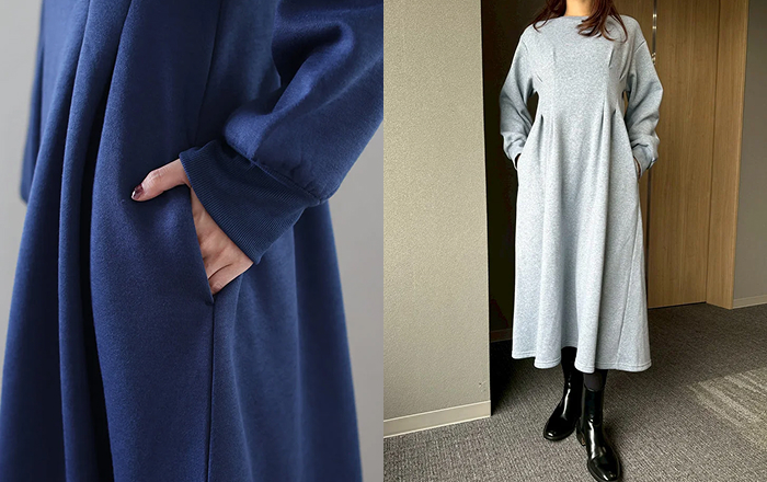 「サイドポケット」付き - 「ワンピースにはポケットがないと不便」というお客様の声にお応えし、スマホや鍵など、ちょっとした小物を入れるのに便利なサイドポケット付き。シルエットの美しさはそのままに、日常の使い勝手が格段にアップします。