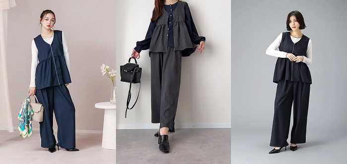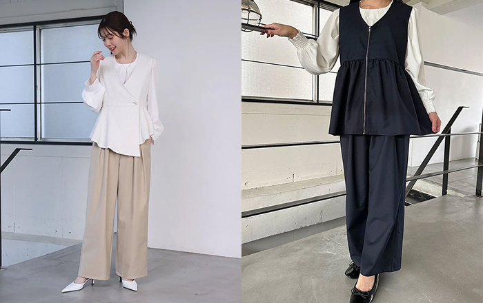シンプルなパンツとタイトスカートと合わせれば、程よく華やぎのある通勤スタイルに。