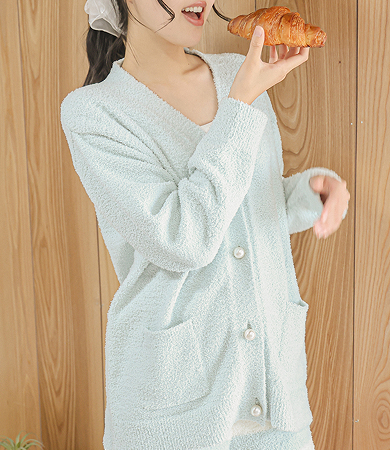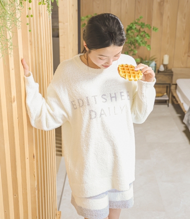 - このルームウェアの最大の魅力は、"ふわっ"とした極上な質感。見た目通り軽やかなのに、空気を含んでしっかりと暖かいから、肌寒い季節のおうち時間に手放せなくなること間違いなし。一度味わったら忘れられない心地よさで、日々のリラックスタイムを上質な時間へ。
